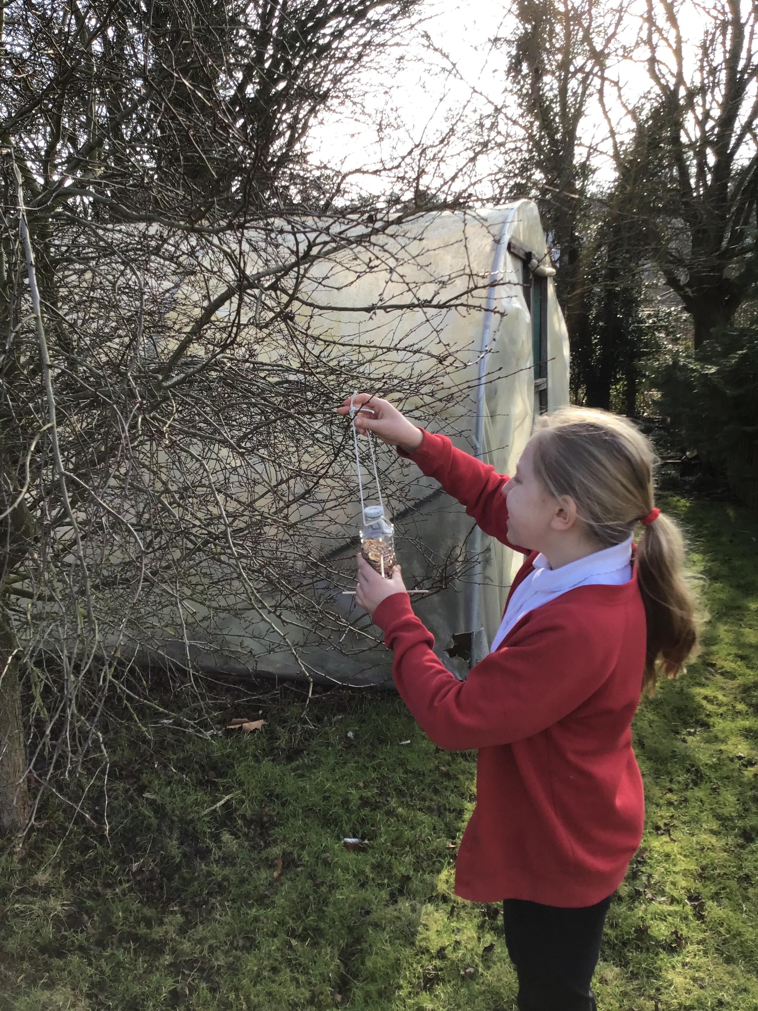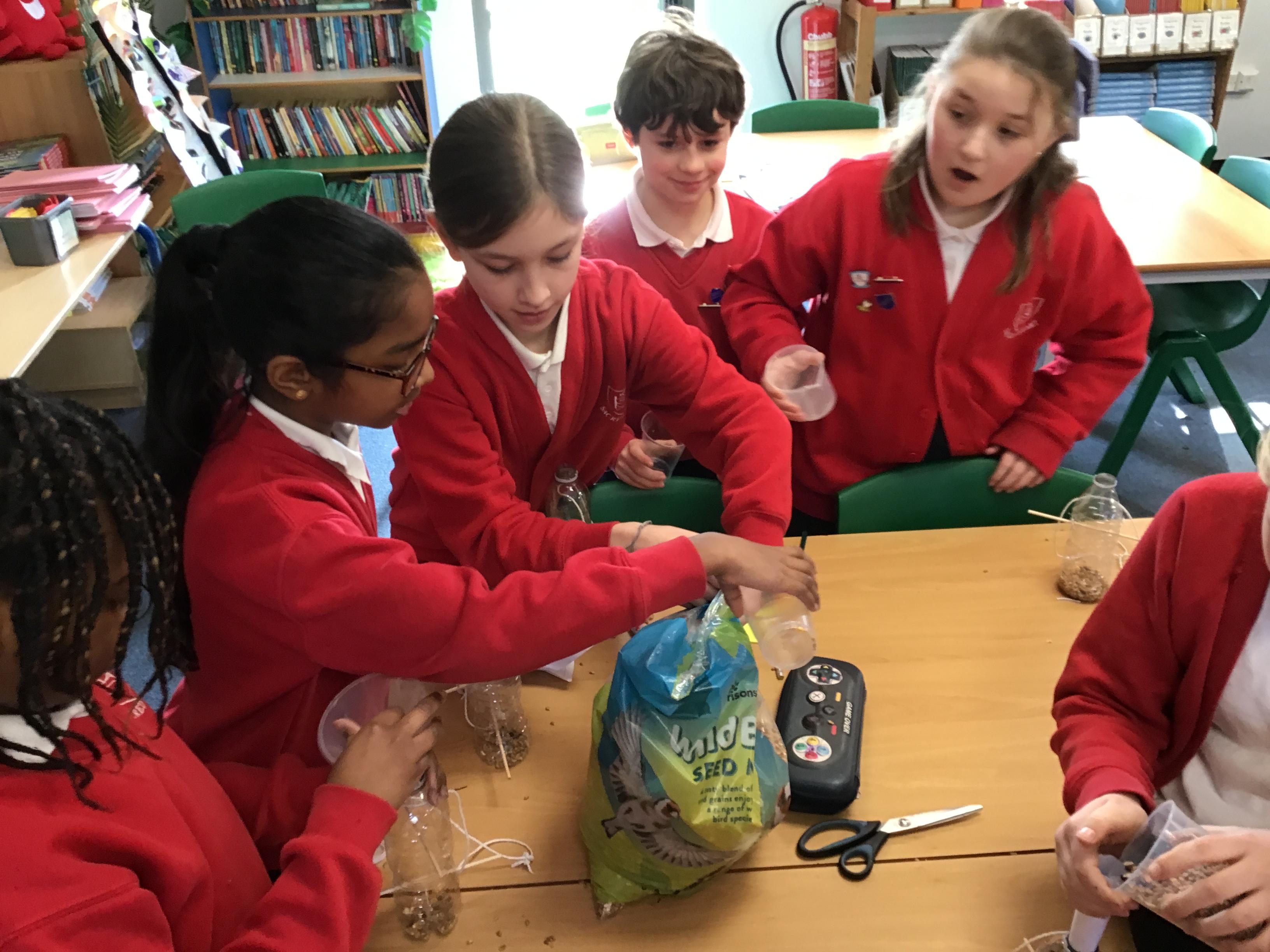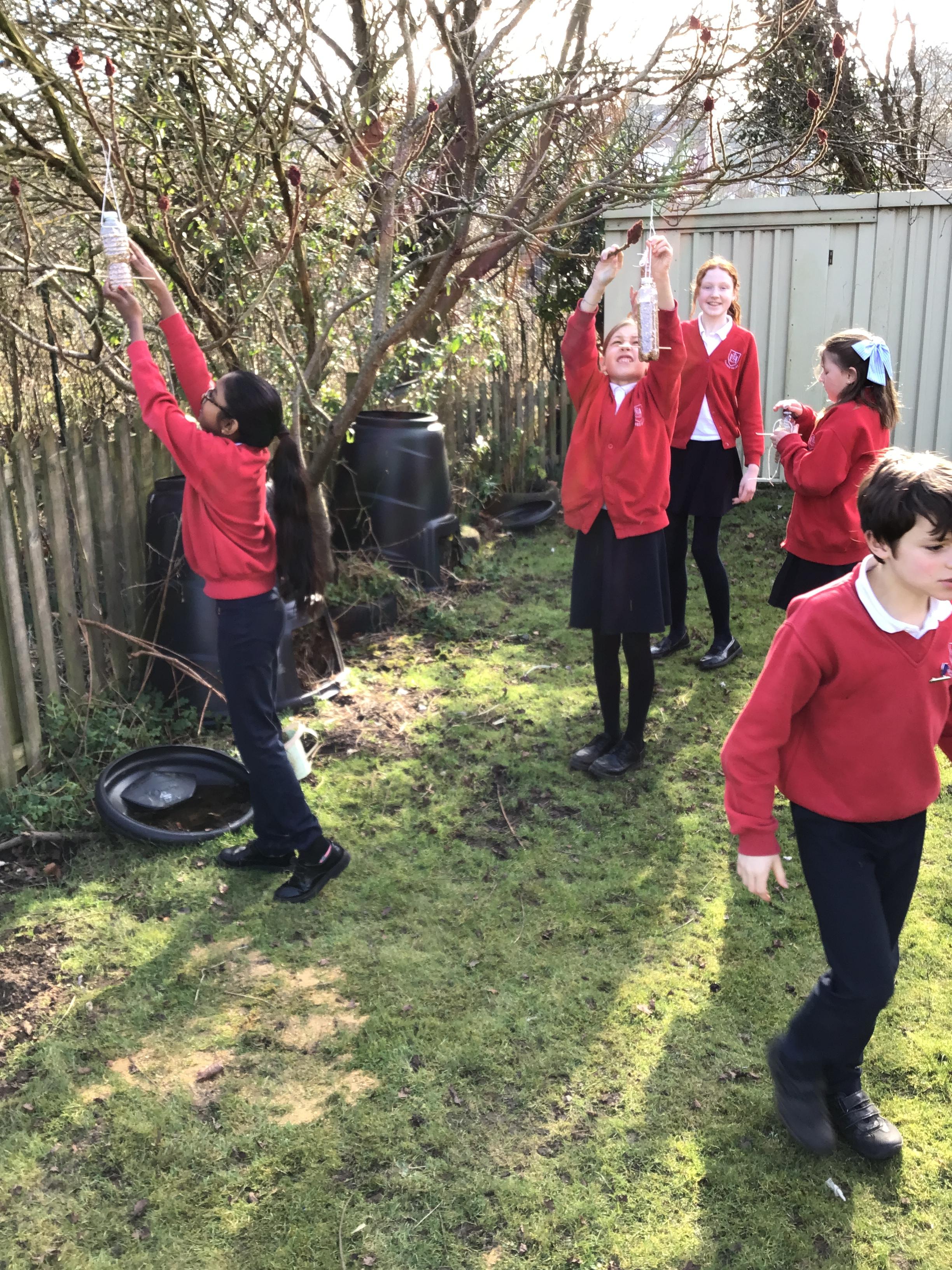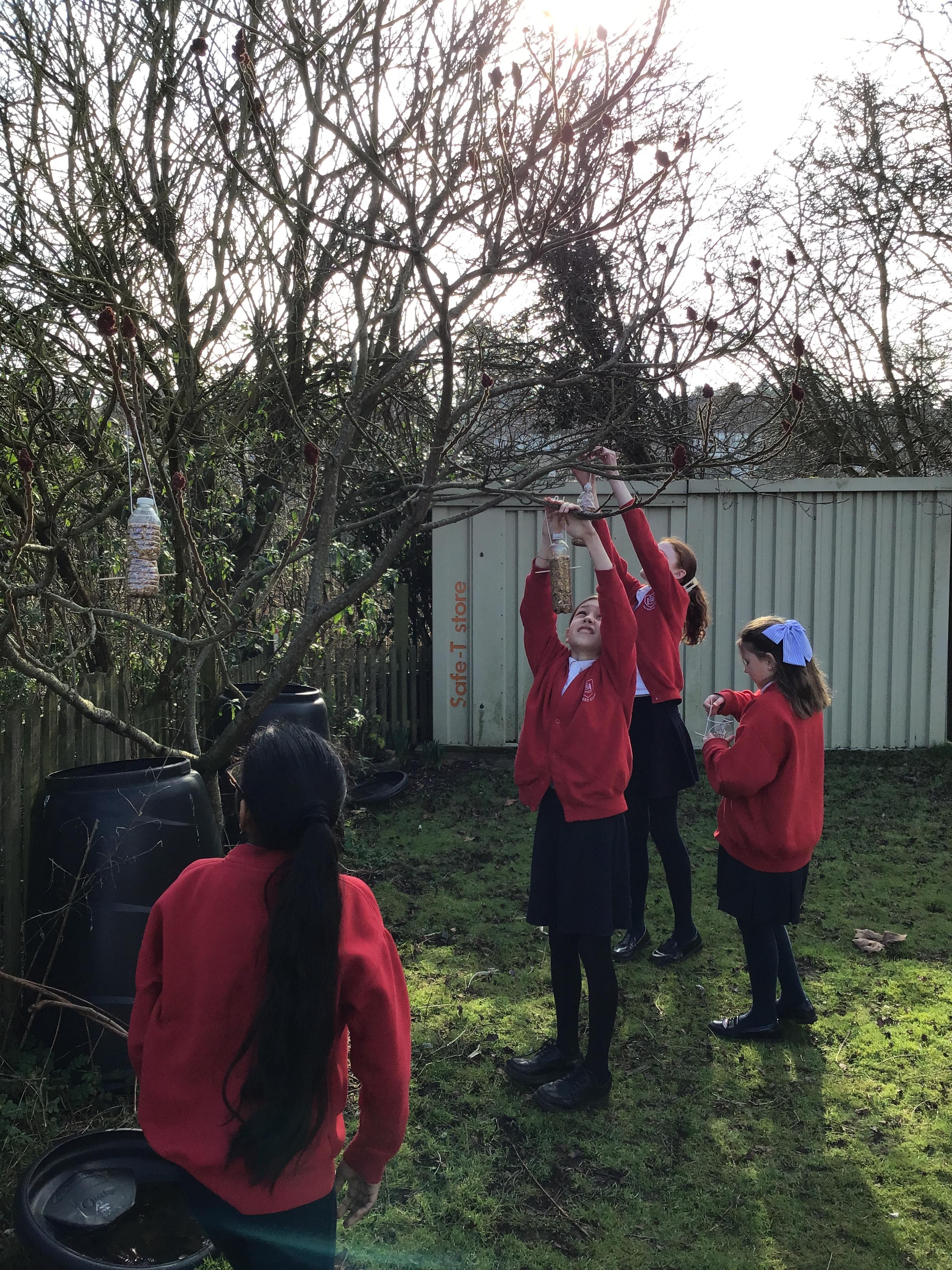 Eco-Club have been busy working on the 'Bio-diversity' theme within our Green Flag application. Last week we made bird feeders out of recycled materials and filled them with bird seed. This week, we have hung them up and completed the RSPB annual Big Bird Watch. We were pleasantly surprised to spot a range of birds, including; a Red Kite, Sparrows, Robins, a Cormorant and many Pigeons, Seagulls and Magpies.
