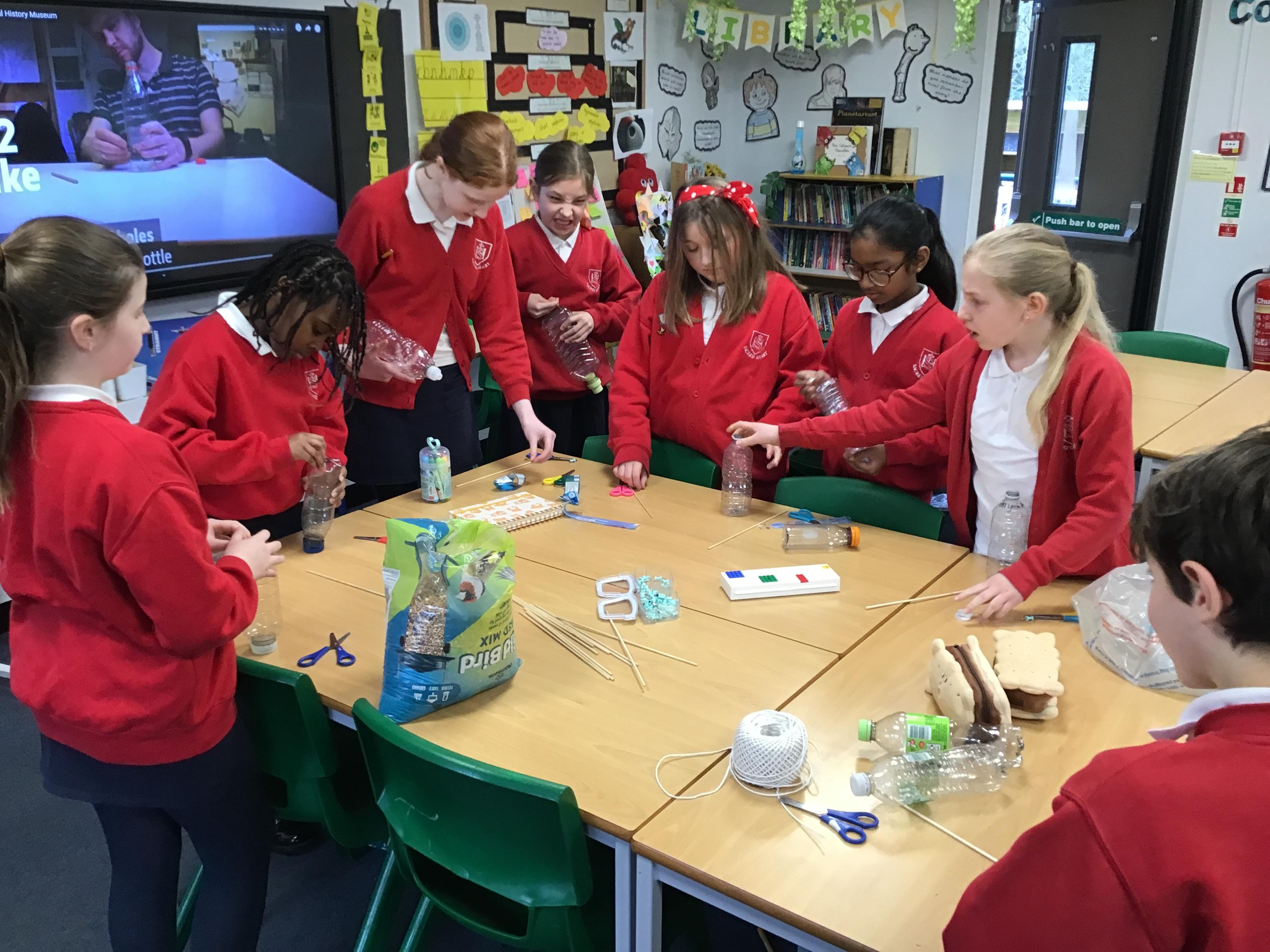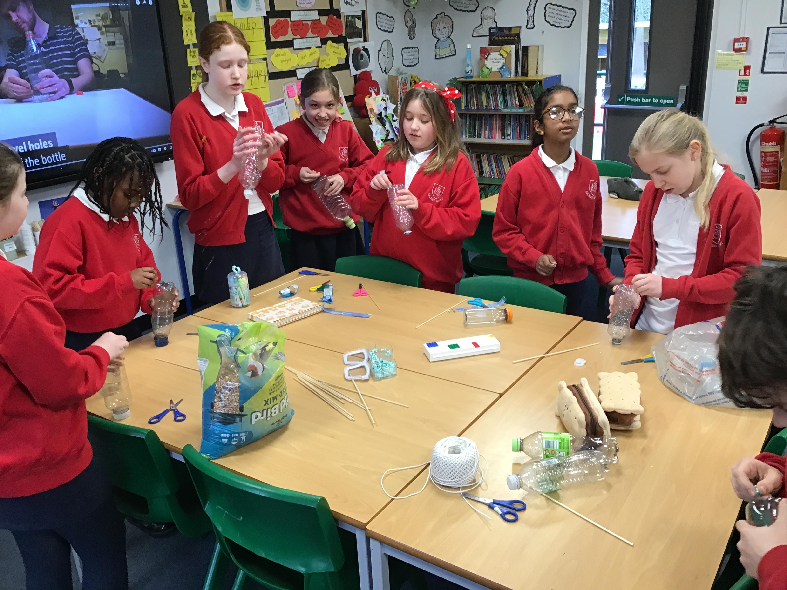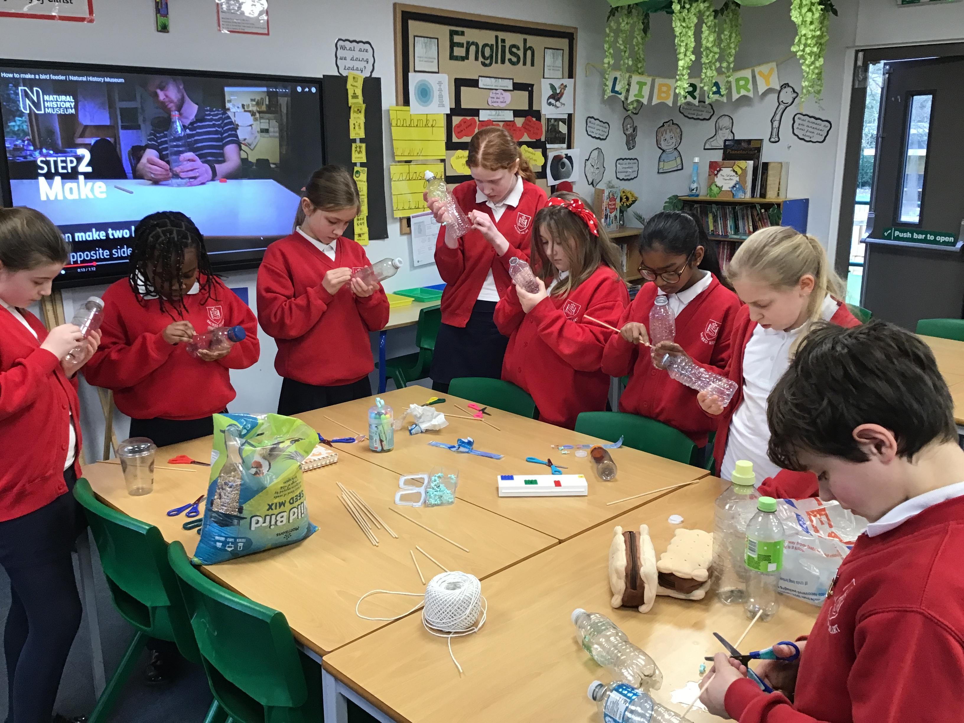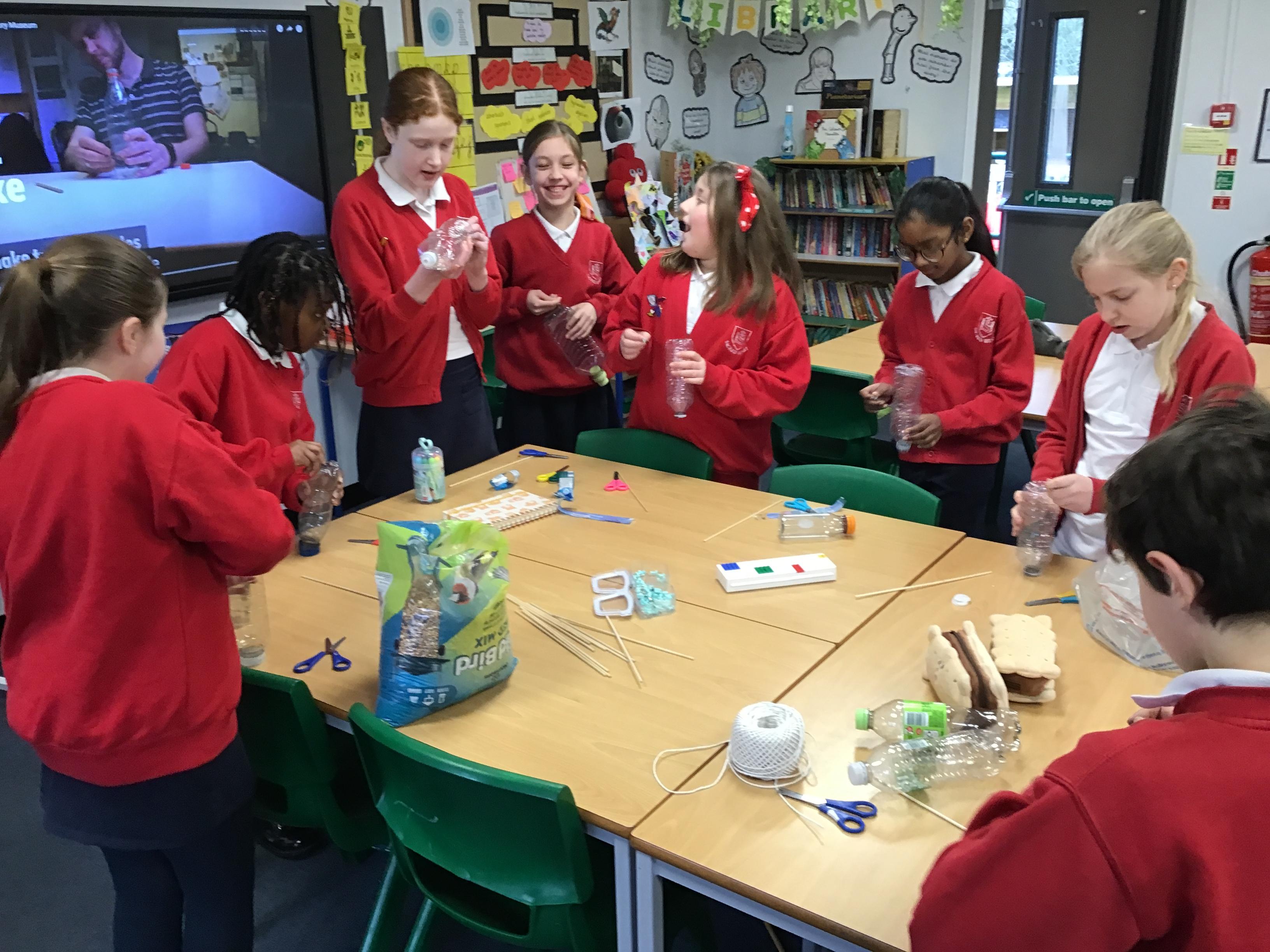 Eco-Club have been busy working on the 'Bio-diversity' theme within our Green Flag application. Last week we made bird feeders out of recycled materials and filled them with bird seed. This week, we have hung them up and completed the RSPB annual Big Bird Watch. We were pleasantly surprised to spot a range of birds, including; a Red Kite, Sparrows, Robins, a Cormorant and many Pigeons, Seagulls and Magpies.
